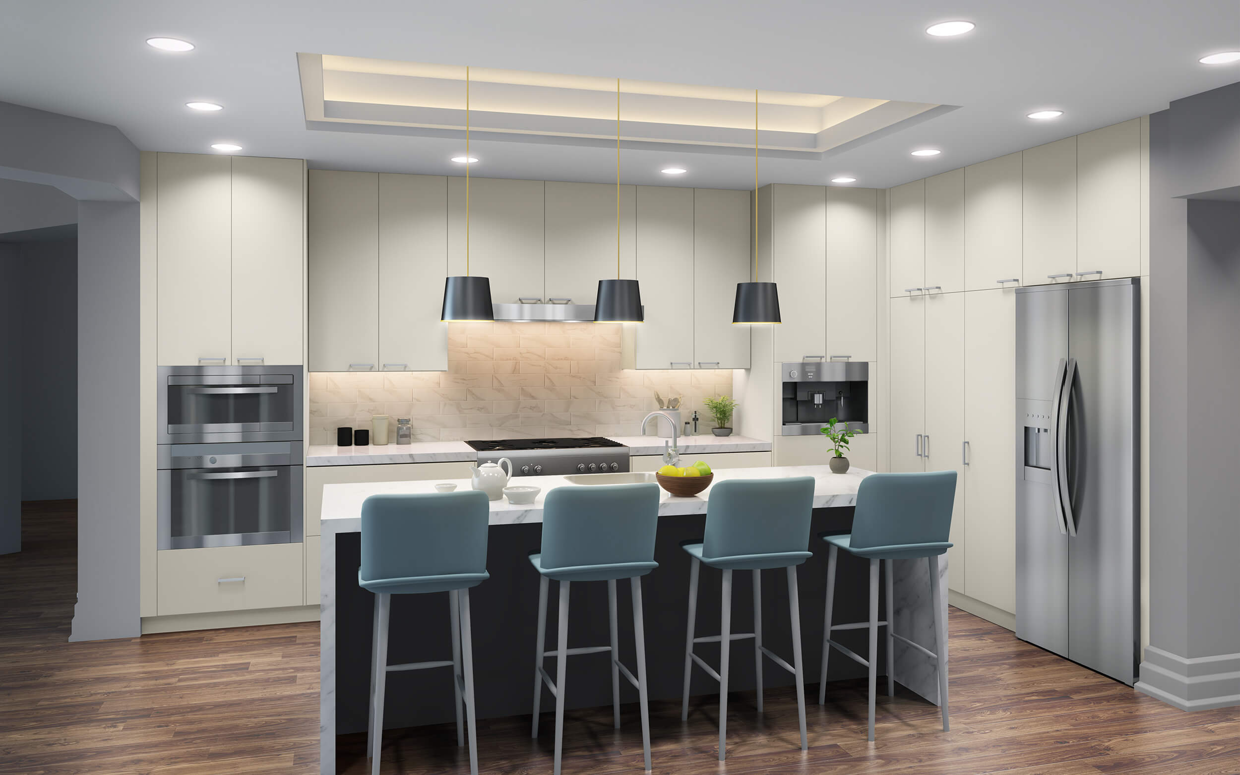 | Full Overlay Doors and Drawer Header. Doors and Headers are Particleboard with durable textured melamine finish (2) sides and matching finish edgebanding. | With 1/16” Reveal on top, bottom, and sides |